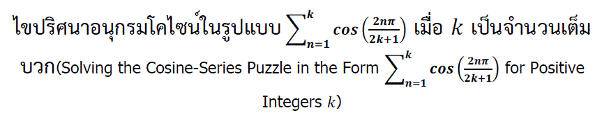 โครงงานคณิตศาสตร์ โครงงานคณิตศาสตร์ เรื่อง Uncoding Complex Power : ถอดรหัสการยกกำลังด้วยความสัมพันธ์เวียนเกิด(Complex Power Recurrence : CPR Method)